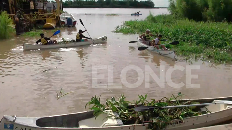 “Sacamos las hierbas que molestan, principalmente a los kayaks que tienen timón ya que le complica la navegación. Tratamos de sacar lo más posible para que quede un espacio libre. Hay dos tipos de vegetación, la flotante como los camalotes y el perenne que son los juncos que están arraigados a la tierra y son los más complicados para sacar”, explicó.