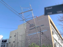 Según pudo saber Elonce, la estructura, de más de 15 metros, está ubicada en la parte trasera de la Facultad de Trabajo Social, sobre calle Brasil, donde se están ejecutando obras en el edificio.