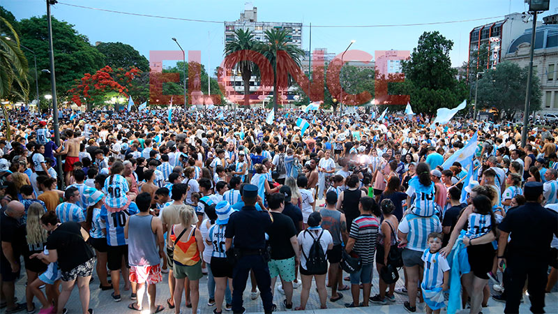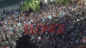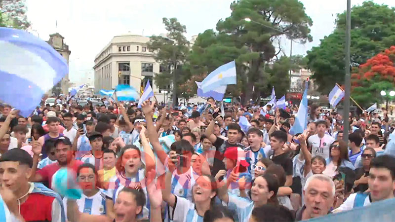 Los colores celeste y blanco inundaron el microcentro de la capital entrerriana. Canticos, bocinazos y banderas acompañaron a los simpatizantes "albicelestes" cuando le dieron la vuelta a la cuadra para festejar.
