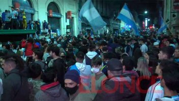 Los colores celeste y blanco inundaron el microcentro de la capital entrerriana. Canticos, bocinazos y banderas acompañaron a los simpatizantes "albicelestes" cuando le dieron la vuelta a la cuadra para festejar.