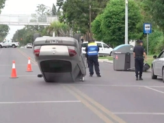 Auto volcó en transitada avenida de Paraná tras chocar a vehículo estacionado