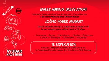 La Asociación Ayudar Hace Bien realiza una campaña solidaria con el objetivo de recolectar ropa de abrigo y calzado para el ropero escolar de la escuela primaria "César Blas Pérez Colman ", ubicada en el Complejo Escuela Hogar de Paraná. Esta iniciativa, busca asegurar que los niños de entre 6 y 15 años estén adecuadamente vestidos para enfrentar las bajas temperaturas.
