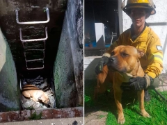 Bomberos Voluntarios de Paraná rescataron con éxito a un perro atrapado en un pozo en el camping "Toma Vieja".
