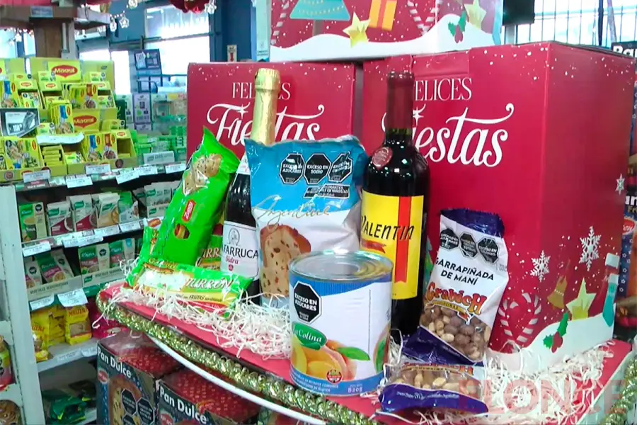El comerciante mostró la canasta más solicitada, compuesta por siete productos: un vino, lata de duraznos, pan dulce, budín, sidra, garrapiñada y turrón. "Tiene un precio de $12.999 y fue la que más respuesta favorable obtuvo por su valor y la calidad de los artículos", reveló.