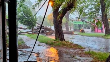 Durante la jornada se registró la caída de un total de 20 árboles, de los cuales cuatro cayeron sobre viviendas, por lo que el personal municipal trabajó en la remoción de los ejemplares. En este marco, agentes municipales removieron un árbol que cayó sobre una casa en el barrio Anacleto Medina.