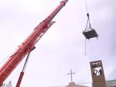 El montaje requirió coordinación entre operadores e instaladores. “Es cuestión de paciencia, pero los años nos ayudaron a tener profesionalismo y el factor humano es el que más nos guía”, expresó Justo, mientras su equipo ajustaba la cúpula en la parte superior del campanario, que alcanzará entre 10 y 12 metros de altura.
