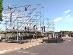 Comenzó el armado del escenario "Luis Pacha Rodríguez" para la Fiesta Nacional del Mate en la ciudad de Paraná. La estructura se ubica en la rotonda de la Plaza de las Colectividades, junto al río Paraná, y tendrá una disposición diferente a ediciones anteriores.