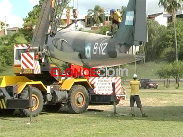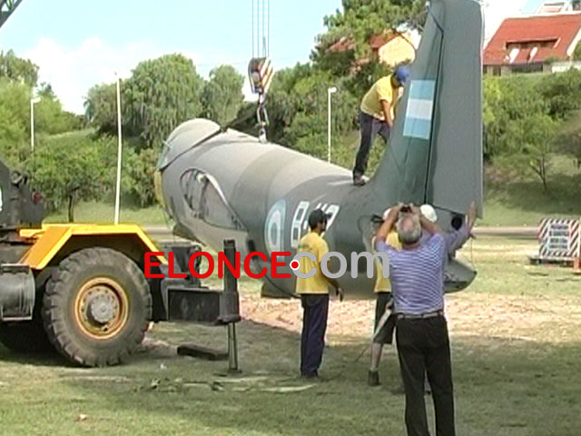 Se realiza el ensamble y los últimos retoques de pintura. Estiman que en cuatro días el avión estará emplazado definitivamente. En el lugar trabaja personal municipal, la II Brigada Aérea y una empresa de grúas, supo <b>Elonce TV</b>.