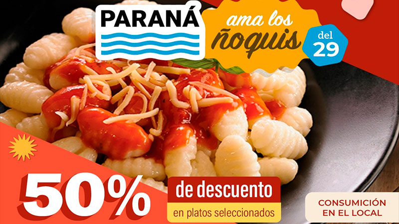 Paraná vivirá una noche con descuentos del 50% en platos de ñoquis. Será este miércoles 29 de mayo de 20 a 24 en comercios adheridos y variedades seleccionadas. Además, habrá opciones sin TACC. El evento se denomina “Paraná ama los ñoquis del 29".