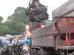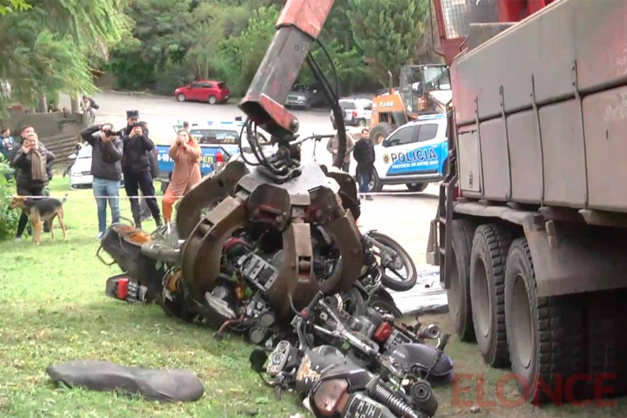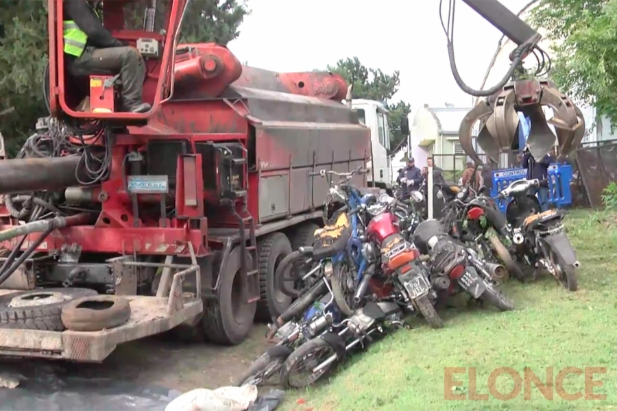 Este martes se realizó la compactación de más de 3.000 motos que estaban almacenadas en el depósito municipal de Bajada Grande, de Paraná, que había sido retenidas por infracciones de tránsito o vinculados a hechos delictivos.