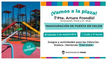 Será este sábado 2 de septiembre, de 14.30 a 17 horas. El espacio recreativo está ubicado en las calles París y Ambrosetti, de Paraná. Habrá diversas actividades para las infancias, juegos y música.