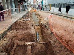 En calle Pellegrini, entre España y Perú, se colocó un nuevo caño maestro de distribución de agua potable de 200 milímetros, de PVC, que reemplaza a un centenario conducto de hierro fundido. La labor mañana consistirá en la colocación de los enlaces, para dejar operativo al nuevo conducto.