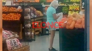 Una mujer fue fotografiada esta mañana, <b>en el sector verdulería del hipermercado ubicado en avenida Larramendi de la ciudad de Paraná, pudo confirmar Elonce. La mujer con una bolsa de nylon en la cabeza fue retratada</b>, cuando estaba junto a las calabazas y también tiene dos bolsas en sus manos.