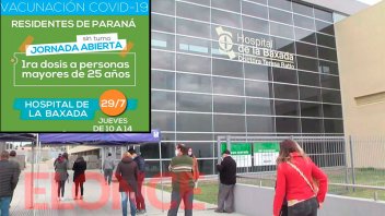 Se realizará hoy una jornada de vacunación sin turno contra el Covid, en el hospital De La Baxada. Es para mayores de 25 años que aún no recibieron la primera dosis. Los requisitos para concurrir.