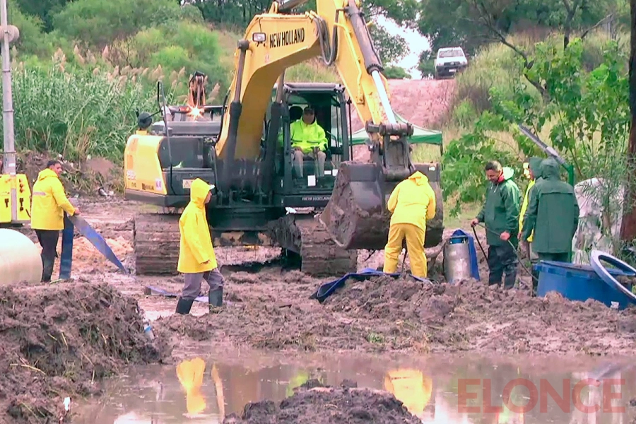 En la mañana de este lunes, y mientras persiste el corte de agua, personal de Obras Sanitarias llegó pasadas las 7 a la zona para retomar los trabajos en el caño maestro.
