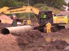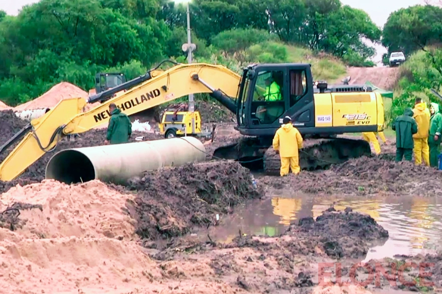 Según pudo saber Elonce, el inicio de la tarea se dificulta debido a la gran cantidad de agua acumulada en el pozo donde está el caño. Es por ello que se colocó una bomba para extraer el agua y poder seguir comenzar las tareas específicas para terminar de reparar el caño.
