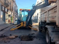 La calle Tucumán, en Paraná, permanece cortada desde las primeras horas de este jueves a raíz de un pozo de gran dimensión que se generó por la rotura de un caño de agua potable. En principio se pensaba que el problema estaba vinculado a las cloacas, pero se confirmó que se trata de una cañería dañada.