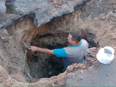 Este jueves, personal municipal realiza tareas de optimización en la red colectora de la calle Malvinas, en el tramo comprendido entre las calles Santiago del Estero y Tucumán. Los trabajos incluyen excavación y descubrimiento de la cañería colectora, ubicada a unos tres metros de profundidad, para verificar el estado de las conexiones domiciliarias. Se ha detectado que algunas de estas conexiones presentan obstrucciones, lo que afecta el normal escurrimiento de los líquidos cloacales.
