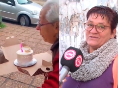 Un emotivo gesto conmovió a los vecinos de Paraná. Liliana y Marco, una pareja de cuidacoches que trabaja en la intersección de calles Salta y Andrés Pazos, sorprendieron a Aidé, una abuela que acaba de cumplir 90 años, con una torta de cumpleaños.