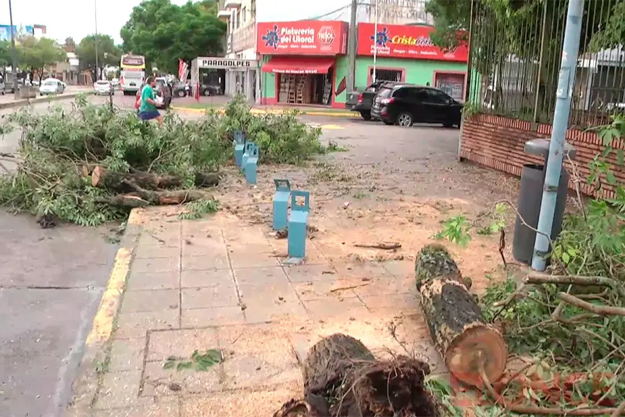 Una de las consecuencias más graves de la tormenta fue la caída de árboles. En Avenida Ramírez y Saraví, un árbol de grandes dimensiones cayó sobre la vía pública, afectando tanto el tráfico vehicular como el sistema de bicicletas públicas. Dos bicicletas del Sistema Municipal de Bicicletas, que forman parte de la Bicivía y la red de ciclovías, fueron dañadas por la caída del árbol. Además, otras zonas de la ciudad, como en Avenida Blas Parera, también reportaron caídas de árboles debido a las fuertes ráfagas de viento.