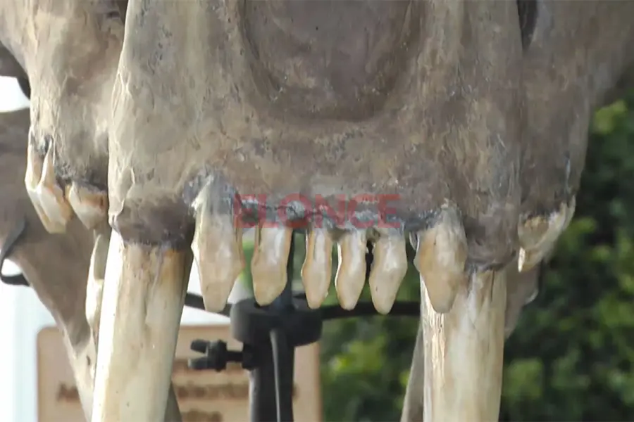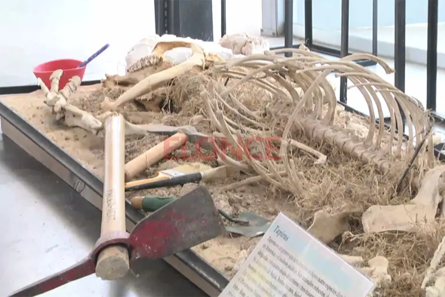 Uno de los fósiles más impresionantes de la exposición es el del perezoso gigante, un animal que vivió en la región y que alcanzaba tamaños colosales. "Es el más grande que hubo mamífero acá en la provincia, y la gente queda sorprendida", añadió Diederle.