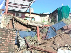 Las fuertes tormentas registradas en Paraná ocasionaron serios daños en barrio Las Flores, donde se produjo el derrumbe de sectores traseros de dos viviendas, que también afectó a una tercera casa ubicada en la parte inferior del terreno, ubicado sobre calle Florencio Sánchez.