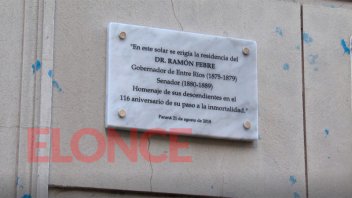 Descendientes del ex gobernador de Entre Ríos, Ramón Febre, descubrieron una placa para recordar los 116 años de su fallecimiento. La misma recuerda que en ese solar se levantó su residencia particular. VIDEO