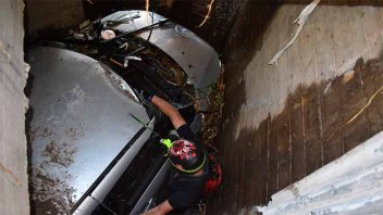 Algunas de las imágenes muestran la secuencia del rescate del automóvil de la chica, lo cual demandó una ardua tarea dado que hubo que moverlo y ponerlo de costado hasta que finalmente puso se llevado hasta un lugar a cielo abierto para que una retroexcavadora pudiera sacarlo.