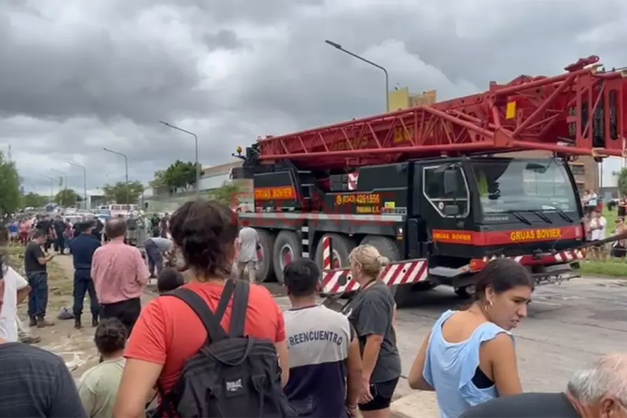 Una grúa llegó al lugar para levantar los cimientos de la casa, que quedaron a la vera del arroyo, y pormenorizar la búsqueda. También revisan una gran boca del entubado, la cual no tiene salida al arroyo. Además, un helicóptero de la Policía realiza una recorrida aérea por la zona.