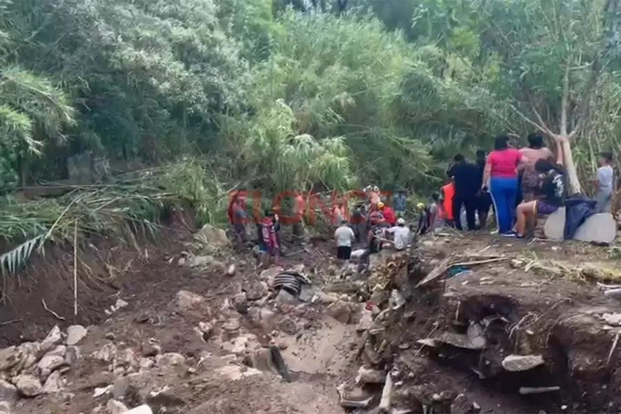En el lugar hay abundante vegetación. Vecinos y familias de la zona se sumaron para colaborar con la búsqueda. Revisan los escombros que quedaron tras el desbarrancamiento de la zona.