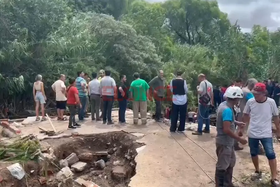 Elonce recorrió el lugar donde se desmoronó la casa como consecuencia del fuerte temporal. Cabe recordar que, durante la mañana de este jueves, con más de 120 milímetros de lluvia acumulada, el cauce del arroyo Colorado creció más de dos metros en pocas horas y arrasó la estructura donde se encontraba la familia.