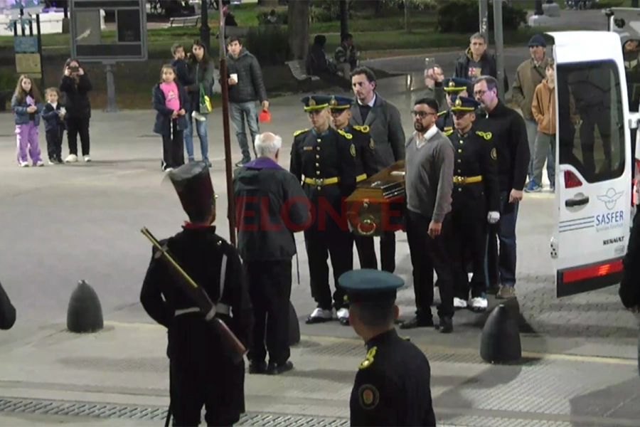 Se colocó una alfombra de grandes dimensiones en la parte posterior al altar, donde fue ubicado el féretro, que es custodiado por personal de la Guardia de Honor de la Escuela de Policías Salvador Maciá.