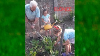 Unos meses después, empezó la cosecha en su huerta y en la soleada tarde del lunes, también inició la siembra junto a sus bisnietas Eugenia de cinco años, Julieta de tres y Lara, de ocho años.