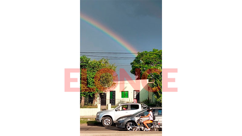 Mientras en algunos sectores llovía con sol, apareció un hermoso arcoíris para colorear el cielo y deleitar a todos, supo Elonce.