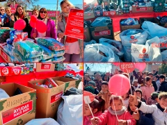 Cajas atiborradas de zapatillas nuevas, de alimentos, de productos de limpieza; y decenas de bolsas medias, abrigo y otros elementos esenciales, fueron el resultado de una nueva jornada solidaria.
