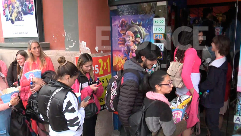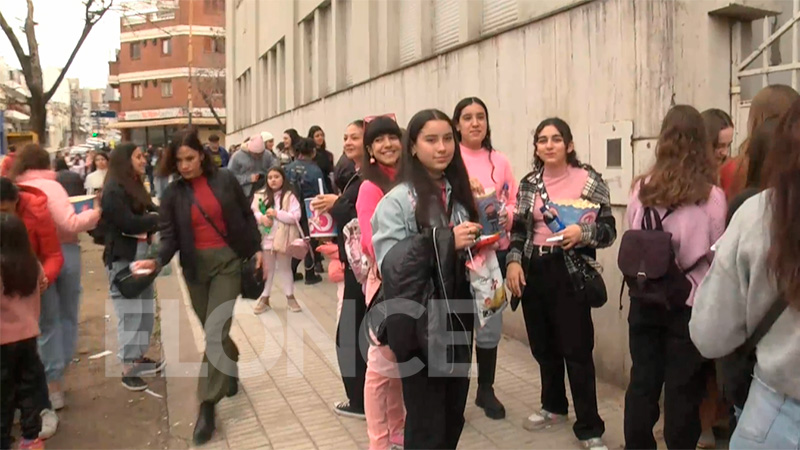 En el Cine Círculo de Paraná, horas previas al gran estreno, se formó una extensa fila de chicas que, vestidas a tono, tiñeron de rosa el lugar.
