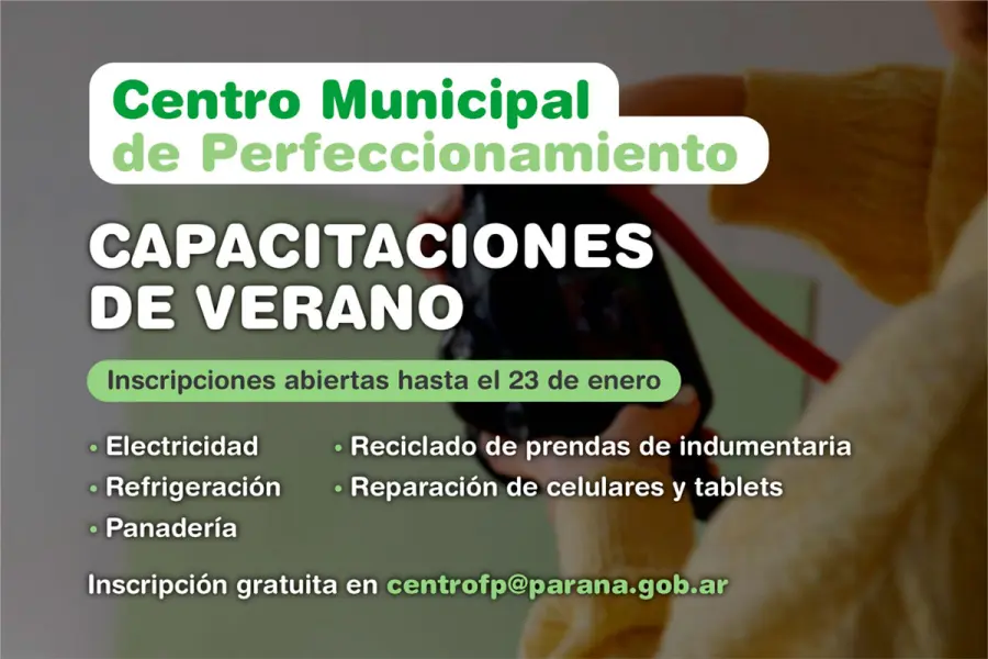 La Municipalidad de Paraná llevará adelante una nueva propuesta de capacitaciones de verano, orientada a la formación en oficios y al fortalecimiento de herramientas laborales para vecinas y vecinos de la ciudad.