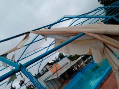 El temporal de fuertes vientos destrozó la cubierta de la pileta del Club Paracao de Paraná. Elonce accedió a imágenes que muestran los daños en las instalaciones de la piscina techada de la entidad deportiva ubicada sobre Juan Báez 745 en la zona sur de la ciudad.