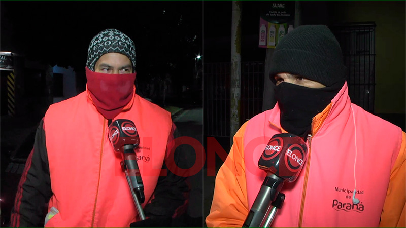 En una jornada gélida, Elonce TV rescató el testimonio de trabajadores que, pese a las bajas temperaturas, desempeñaban su labor diaria. “Nos pusimos todo lo que se podía, porque el frío está bravo”, aseguró Martín, un recolector de residuos que, desde 2011, cumple servicio en la municipalidad de Paraná.