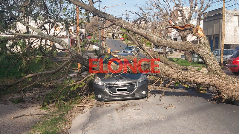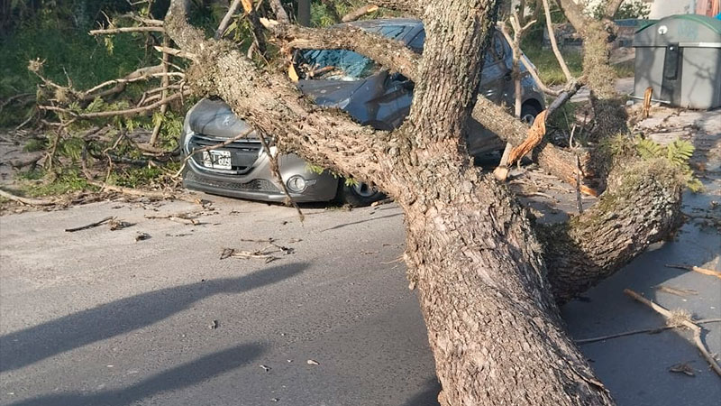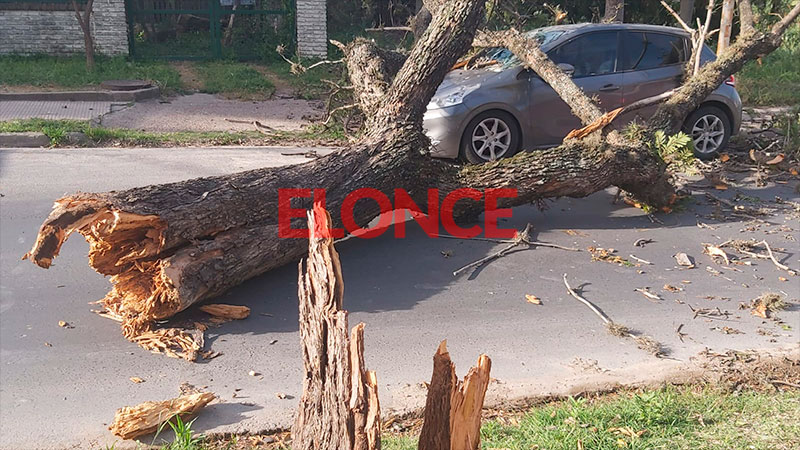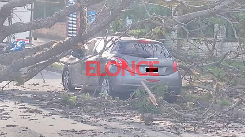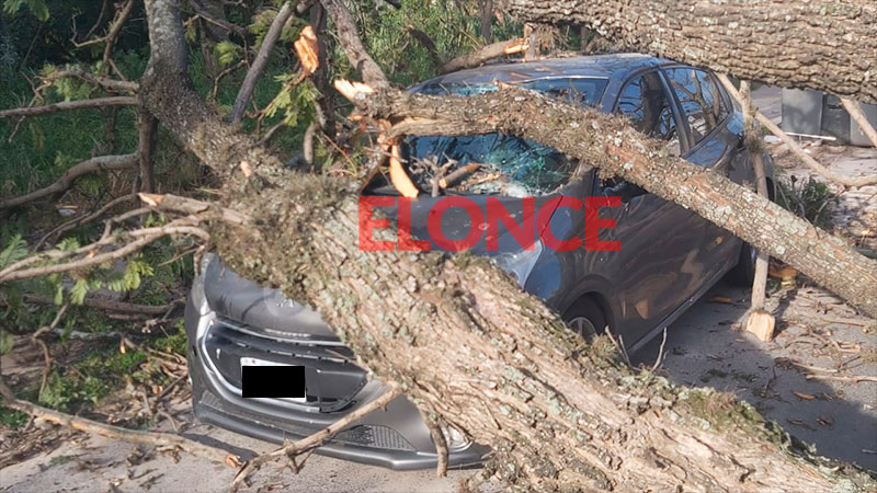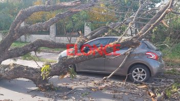 El árbol cayó sobre un vehículo que terminó con daños en el parabrisas y en el techo. Se trata de un Peugeot 208 que se encontraba estacionado.
