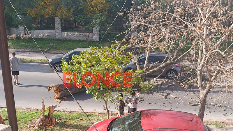 Las fuertes ráfagas, derribaron varios árboles en diferentes zonas de la ciudad y uno de ellos, se registró en calle Nogoyá, entre San Luis y La Rioja.