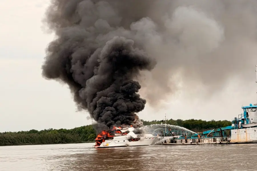 Incendio de embarcación en el río Paraná. Una embarcación se incendió este viernes por la tarde, mientras navegaba por aguas del río Paraná, en la zona ubicada antes del ingreso a Villa Urquiza. El siniestro se desató en el kilómetro 612, margen izquierdo —al norte de Las Conchillas—, y generó una densa columna de humo negro que fue visible desde distintos puntos de la costa. Elonce accedió a las imágenes que registraron cómo el fuego avanzaba sobre toda la estructura del yate, que terminó completamente destruido.