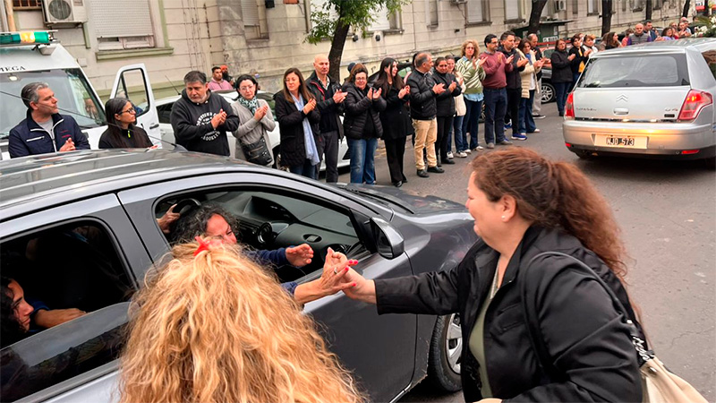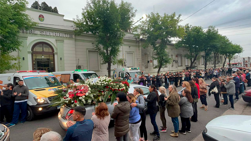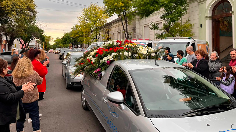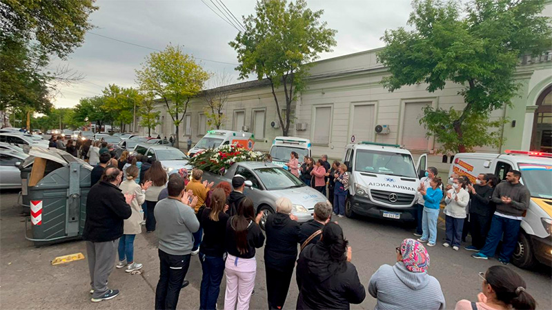 El cortejo fúnebre pasó por el hospital San Martín, donde colegas y trabajadores del nosocomio le dieron el último adiós al profesional de la salud entrerriana. Una emotiva despedida con aplausos rodeó los restos del Dr. Carlos Bantar.