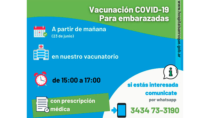 El hospital materno infantil San Roque de la ciudad Paraná confirmó que este miércoles dará comienzo en su vacunatorio la inoculación contra el covid a embarazadas que tengan prescripción médica.