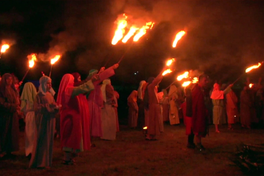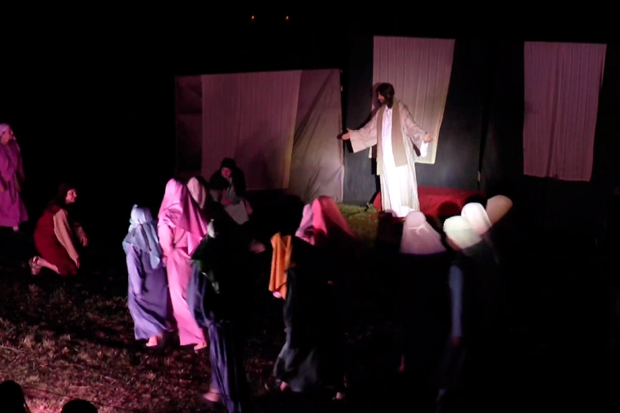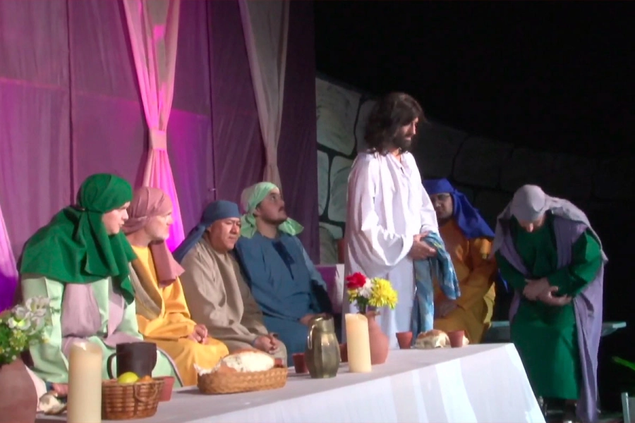 Desde las 20:30, el predio se transformó en un escenario a cielo abierto donde se desarrollaron 17 escenas que relataron los últimos momentos de la vida de Jesús. La representación se llevó a cabo en formato "en vivo", lo que permitió que el público viviera cada pasaje con una intensidad especial, rodeado de luces, escenografía y un sonido envolvente que trasladó a los asistentes al contexto bíblico.