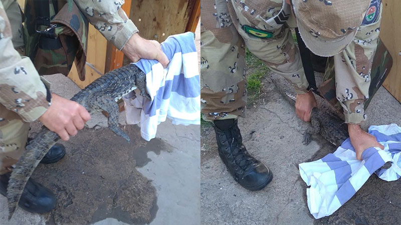 Después que pusieran a resguardo a un flamenco rosado que fue hallado en un campo de Hasenkamp, personal de la Brigada Paraná de la Dirección de Prevención de Delitos Rurales fue convocado “por la División 911 de Paraná, para tomar intervención en una situación reportada en República de Siria y 1º de Mayo, donde una persona había encontrado un ejemplar de Caiman Latirostris, conocido como Yacaré Overo”.