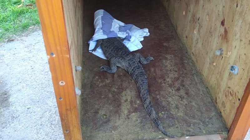 Mide aproximadamente 60 centímetros de longitud. Fue hallazo en República de Siria y 1º de Mayo. La Brigada de Abigeato lo capturó y trasladó al Parque General San Martín para sus cuidados iniciales y monitoreo.