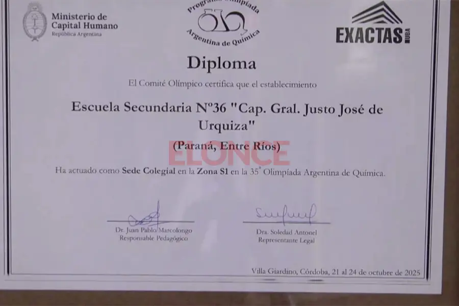 Por su parte, Valentino, comentó que “participé en la instancia nacional de las Olimpiadas de Química y fue una experiencia interesante. Nosotros viajamos a Villa Giardino, en Córdoba, y fue lindo. Llegamos con la delegación de Santa Fe, porque Entre Ríos, lamentablemente, en este sentido, no tiene delegación propia porque somos muy poquitos los que participamos”.