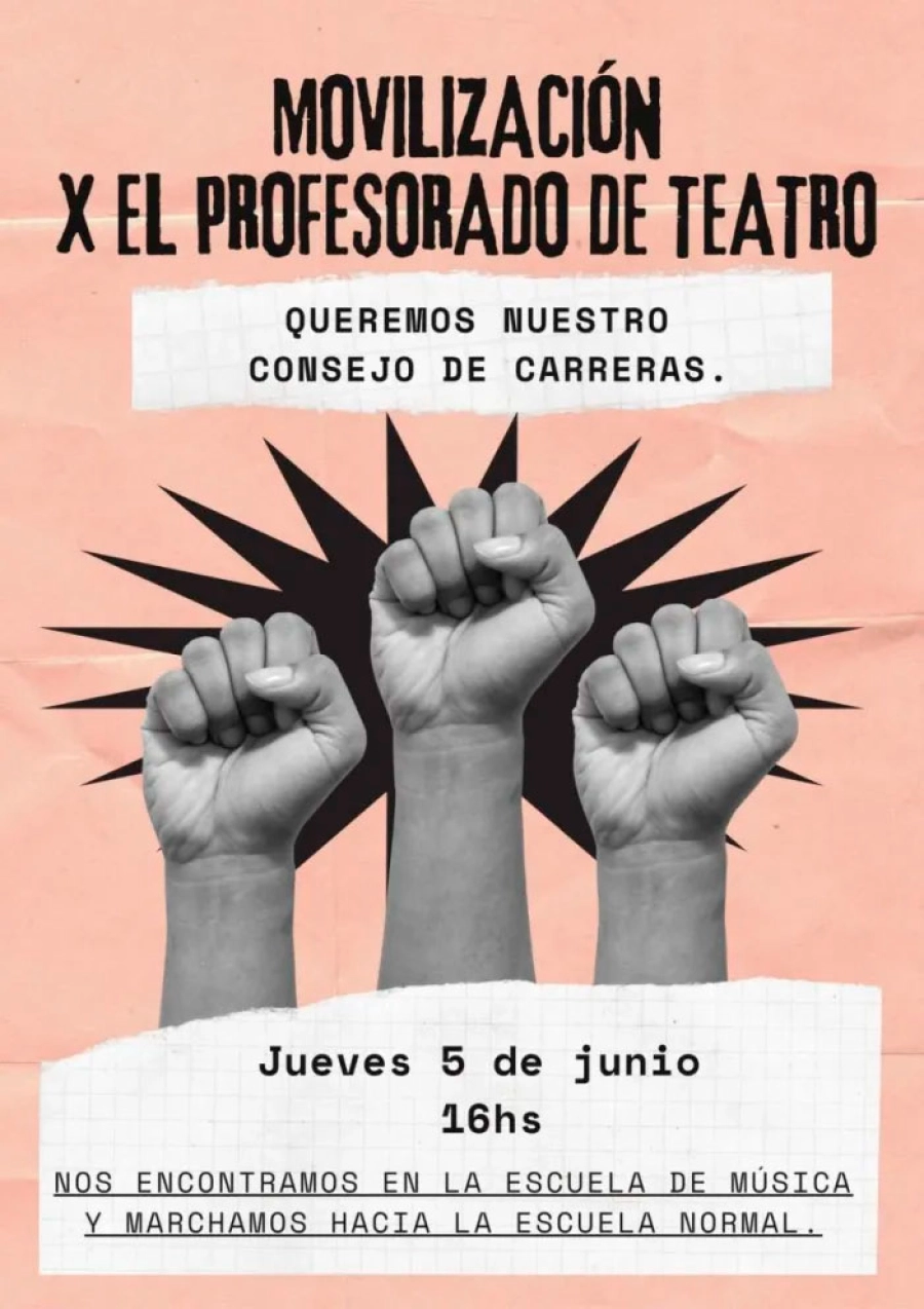 La convocatoria fue impulsada por estudiantes autoconvocados, tras haber enviado una nota al decano Daniel Richar el pasado 20 de mayo sin obtener respuesta. “Frente a la ausencia de respuestas institucionales, presentamos un reclamo más urgente y estructural: exigimos la creación inmediata de un Consejo de Carrera exclusivo para el Profesorado de Teatro”, indicaron en el texto entregado por mesa de entradas.
