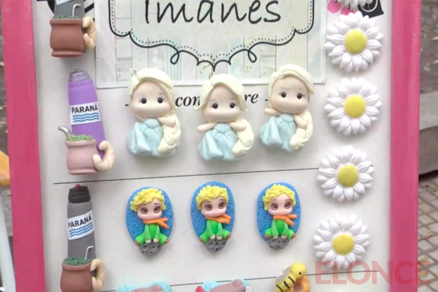 Entre los stands, una emprendedora exhibió productos elaborados en porcelana fría y habló sobre la “vedette” de las ventas: la estrellita culona del CONICET. “Cuando la vi dije, no puedo no hacerla, hice un montón pero volaron”, relató sobre uno de los artículos más buscados. Explicó que durante el fin de semana anterior los imanes se agotaron en la feria de la costanera.